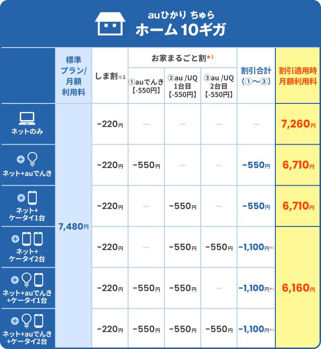 - 割引期間終了後は、ホーム10ギガ(しま割3年)の場合、